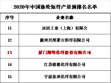 “2020年中國化纖行業產量預排名”在會上發布,翔鷺化纖2020年纖維總產量位列中國第36,切片紡滌綸民用長絲產量和滌綸短纖產量均位列中國第13。