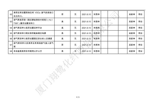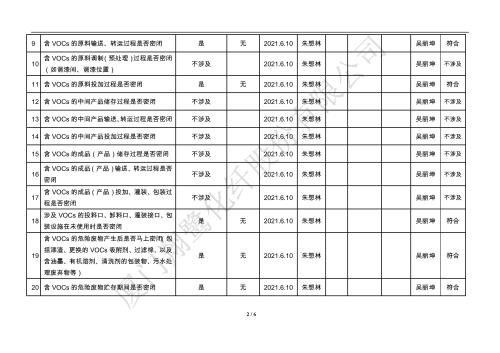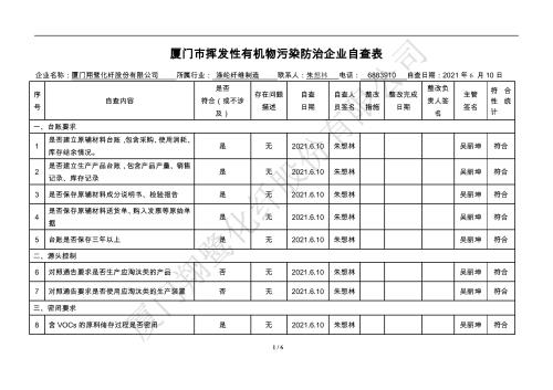 廈門市揮發性有機物污染防治企業自查表(2021年 第二季度)